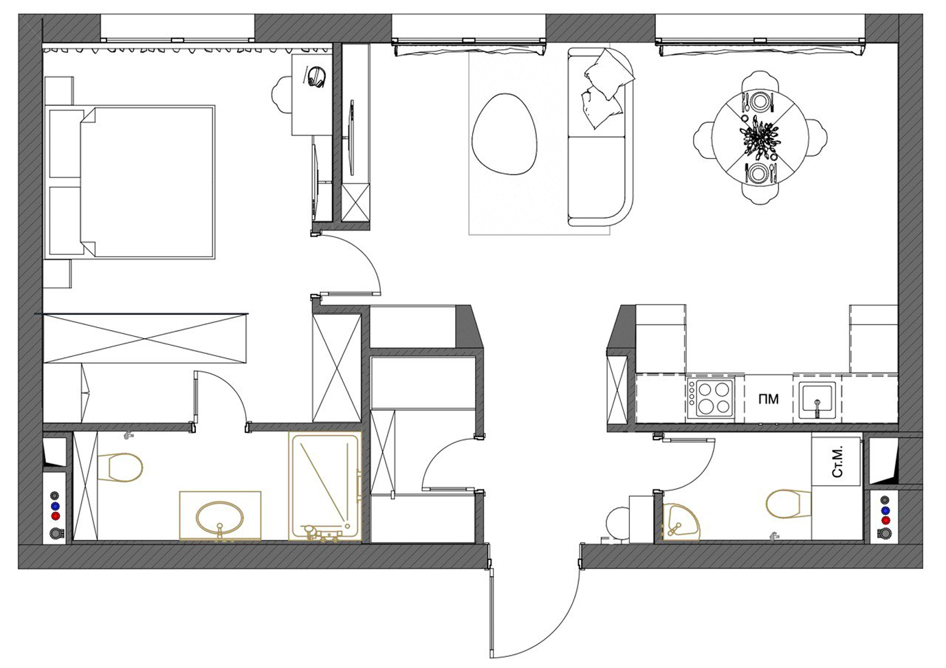 Параллельно приступаю к обмерам и планировочным решениям. Планировке я уделяю особое внимание, потому что только благодаря правильной расстановке мебели можно получить гармоничное и функциональное пространство, идеально подходящее под ваши требования и жизненный ритм.